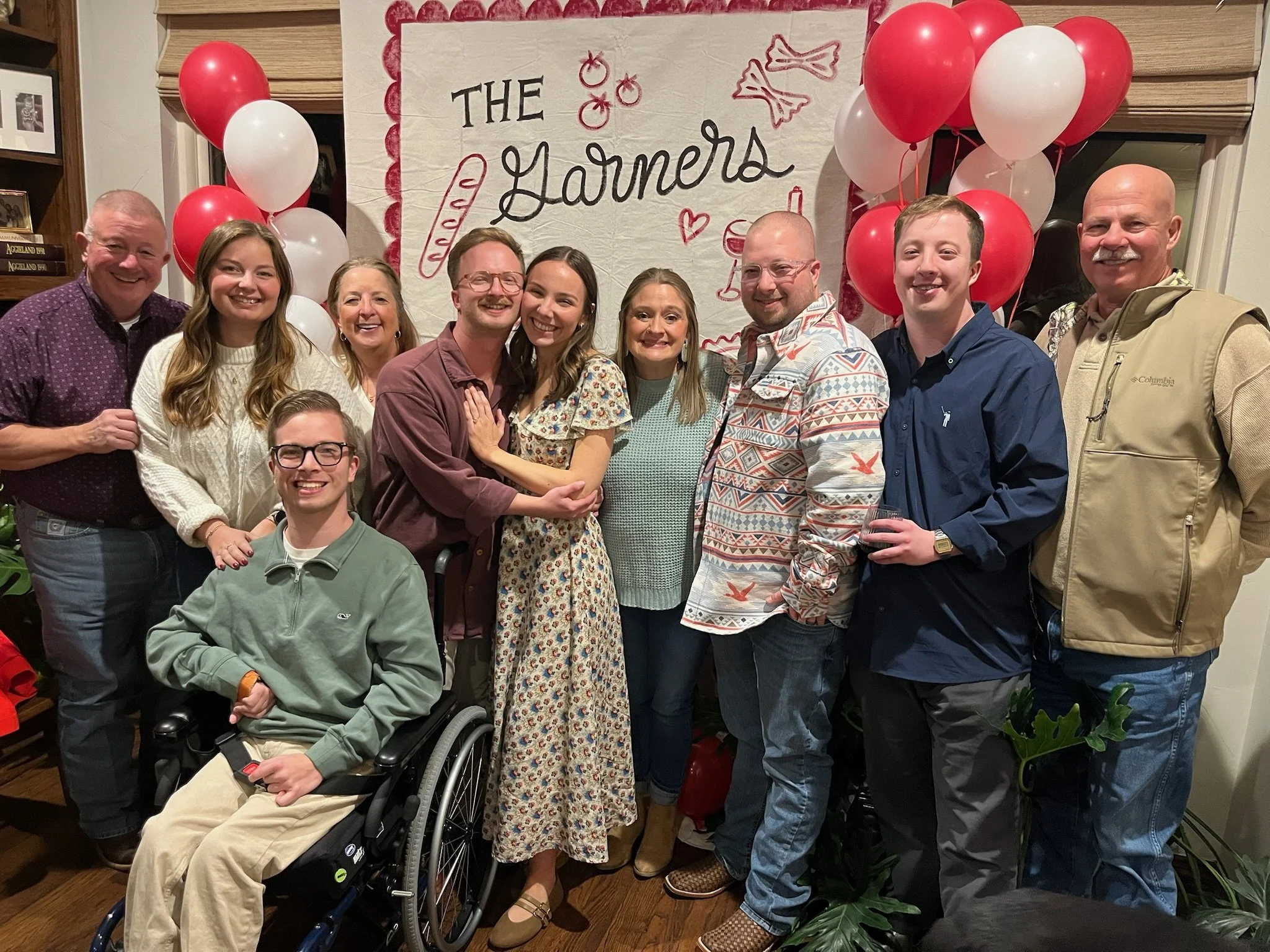 left to right: my uncle Bill, the ever so beautiful Gia, my mom, my second oldest brother Hayden and his fiancé Alyssa, my sister-in-law Kim and her husband, my oldest brother Garrett, my third oldest brother Trevor, and my dad.